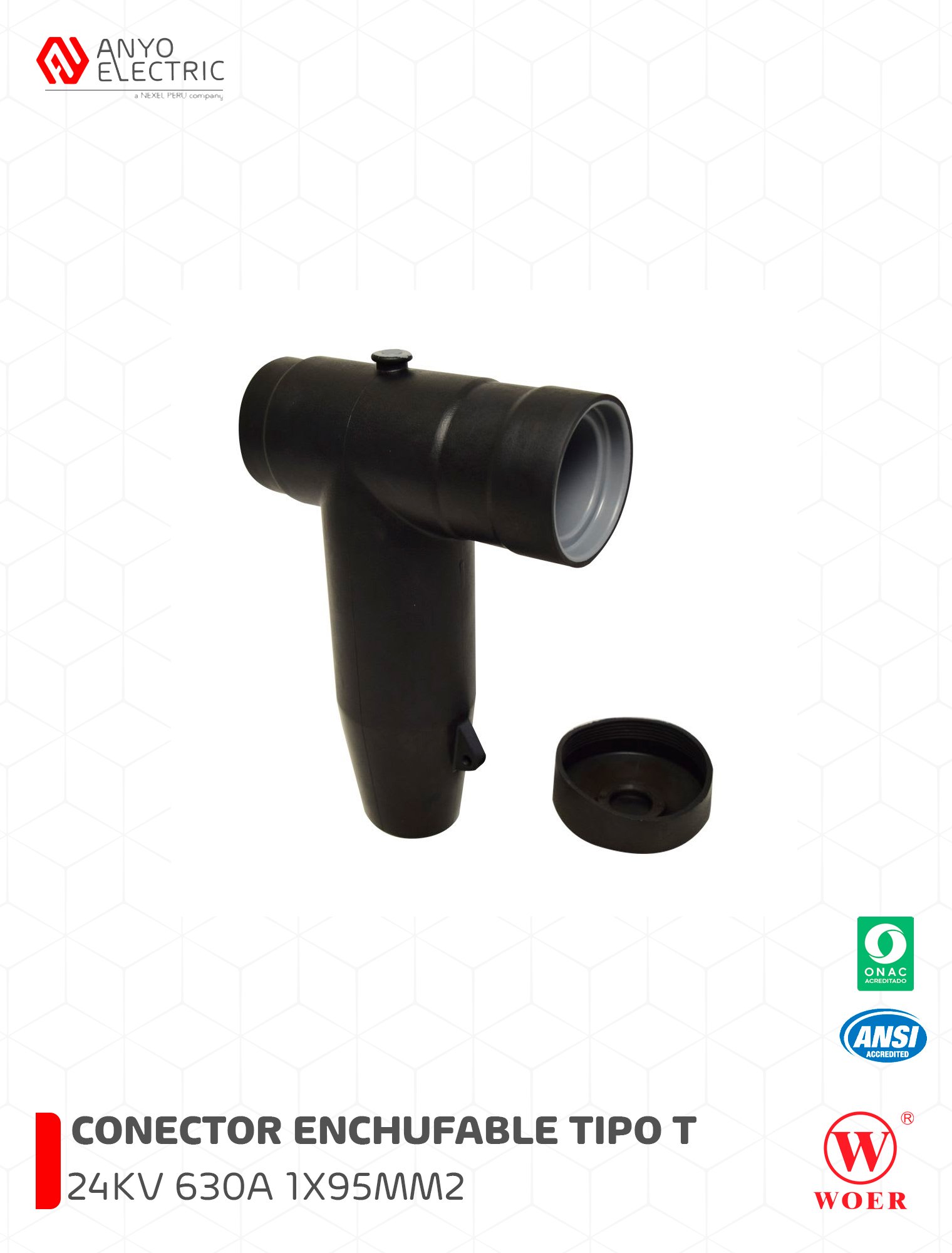 El WEB24-630D06C1 es un conector enchufe tipo T diseñado para sistemas de media tensión (24 kV), con una capacidad de corriente de hasta 630 A. Este conector es adecuado para aplicaciones con cable seco unipolar de 120 mm², proporcionando una conexión segura, robusta y confiable entre el cable y el equipo de media tensión, como transformadores, celdas o interruptores.